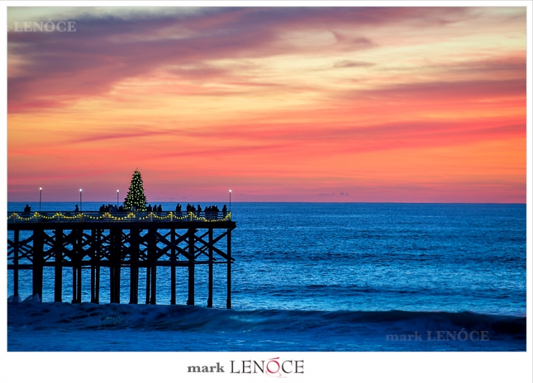 Crystal Pier Christmas Tree at sunset December 2014 – Merry Christmas from Pacific Beach San Diego! See the San Diego 2015 Calendar at http://marklenoce.com