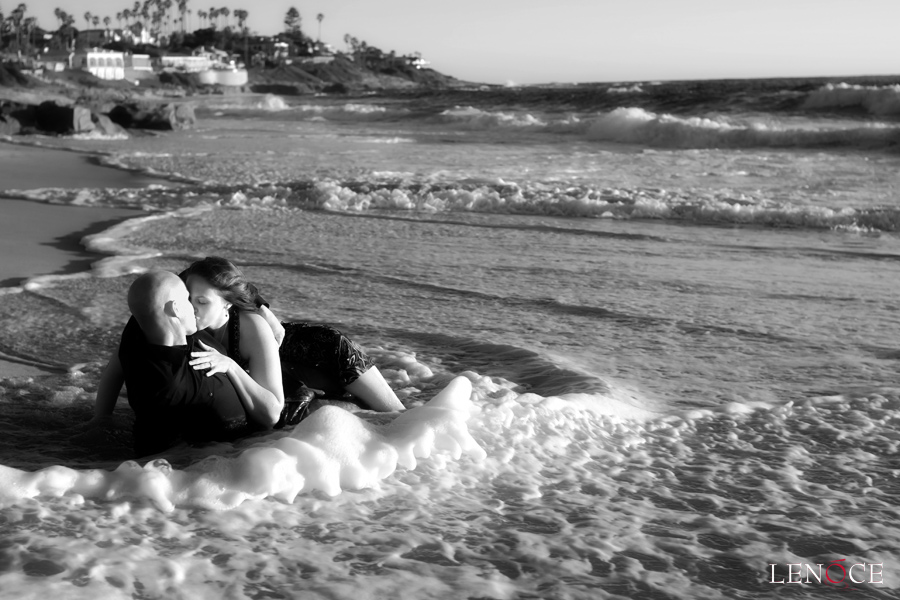 The heat was on during their beach engagement session with some movie inspired rolling around in the cold water.