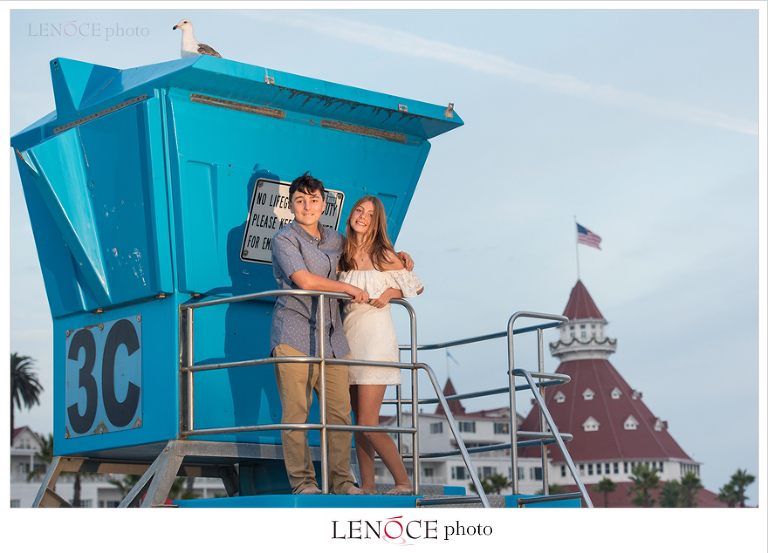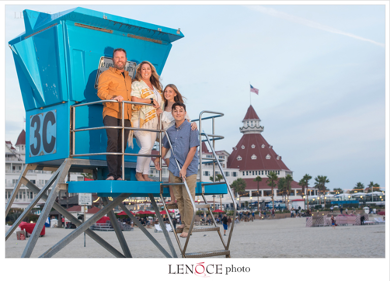 The Wagner’s annual family portrait at The Hotel Del Coronado complete with Holiday decor and hanging out at the lifeguard tower.