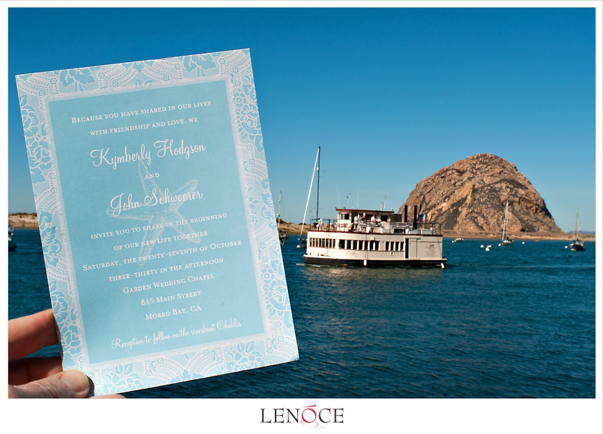 It was a perfect 80 degree day last Saturday in Morro Bay for Kym & John’s wedding! While shooting some stills of their wedding invitation, the riverboat Chablis happened to cruise by (the reception venue.) Their intimate ceremony was held in the Garden Wedding Chapel hidden behind a bookstore in this quaint fishing town.