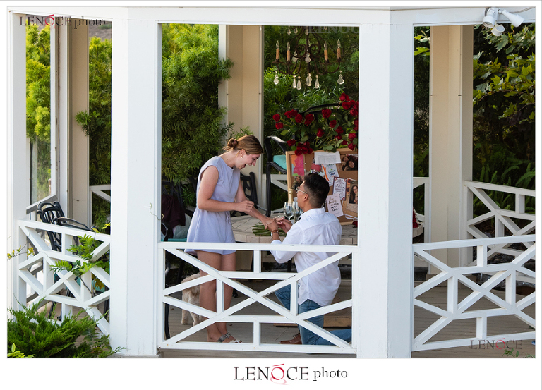 Benson went all out with his proposal to Samantha at a cliffside mansion in Laguna Niguel! The rose ceremony was complete with their dog Romeo participating in the big moment!