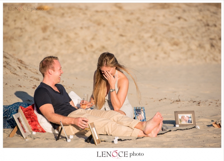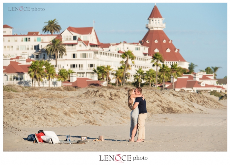 One year ago to the day they met at a friend’s wedding, and have they been together ever since! Mike had a picnic of Champagne & strawberries set up for his proposal on the beach at The Hotel Del Coronado that they happened upon while going for a walk. .jpg)